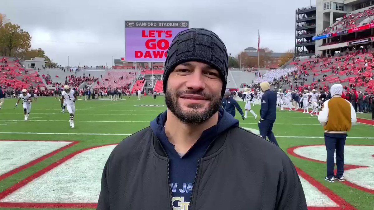 Mais cedo hoje, Reigns (que jogou anteriormente pela Georgia Tech) esteve presente no jogo de futebol da faculdade, mais precisamente no jogo Georgia Tech Yellow Jackets vs. Georgia Bulldog. Reigns falou rapidamente com a imprensa antes do jogo: